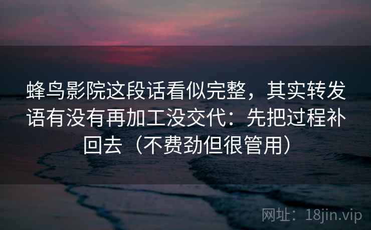 你是否曾经在社交媒体上看到一条内容,它似乎完美无缺,信息详尽,让你忍不住随手转发?而今天我们要聊的“蜂鸟影院”这段话,恰恰就是这样一种情况。它看似完整,逻辑顺畅,但仔细推敲,却在“转发语”这个环节留下了一丝模糊地带:那些看似不经意的分享,究竟有没有经过二次加工?信息源头的真实性,究竟有多可靠?
