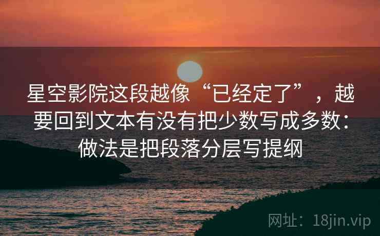 在“星空影院”的宏大叙事里,我们常常沉醉于那些被反复描绘、似乎已成定局的经典场景。作为创作者,我们必须时刻警惕一个陷阱:当某些情节、某些角色、某些群体在文本中显得越发“已经定了”,越发符合大众的既有认知时,我们是否无形中将“少数”的真实声音,稀释成了“多数”的刻板印象?